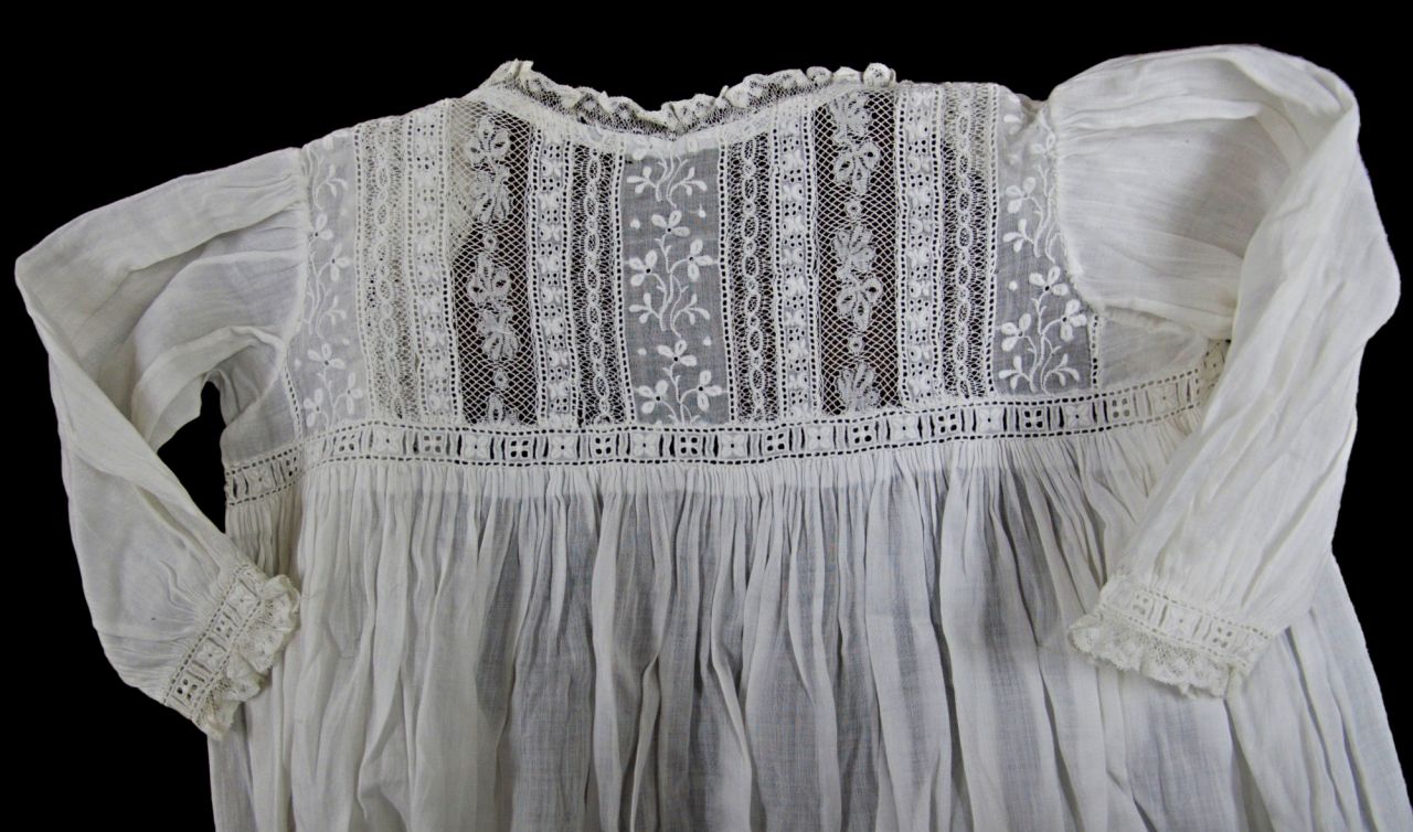 Christening gown with machine-made lace and late-Victorian whitework embroidery. (Collection: Whitby Museum…, Costume Collection, GBI43). Photo: Viveka Hansen, The IK Foundation.