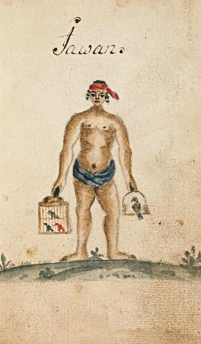 Schantz did not mention textile dyes – like indigo or other dye plants in his journal – so this was probably not a subject the young man had any knowledge about. His watercolours, however, clearly show which colours various groups of inhabitants in Canton preferred or were obliged to wear during the 1740s, which in combination with other contemporary written sources, gives a good understanding of the traditionally used colours on clothing. In Schantz’s written notes (pp. 97-101), on the other hand, one must be more cautious because he seems to have been uncertain about the textile materials used and the choice of colours. A few text sections will be quoted in a translation from Swedish to exemplify his lack of confidence in connection with such matters: