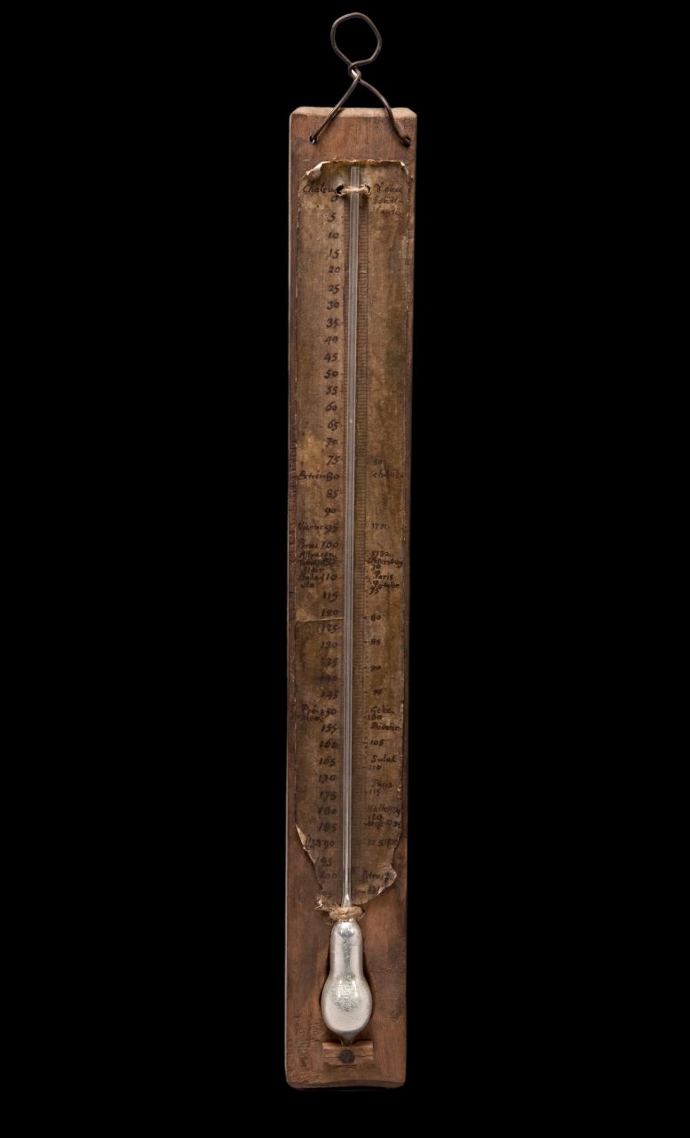 The only apostle who seems to have lacked access to a thermometer was Pehr Osbeck when the Swedish East India Company ship returned from Canton. Sailing close to Java on 6th February in 1752, he noted: ‘I had no thermometer, but the leaves of Camellia and of the Batatas showed that it was colder here than in China. The accounts of seamen of a greater degree of cold at the South Pole are pretty probable.’ This replica of Anders Celsius’ thermometer of glass and wood, dating 1741-1742, may have been a model used by the travelling naturalists, or a more weather-resistant model where the temperature scale was engraved into a metal or wooden model. (Courtesy: Tekniska museet, Sweden, TEKS0055284, Digitalt Museum).