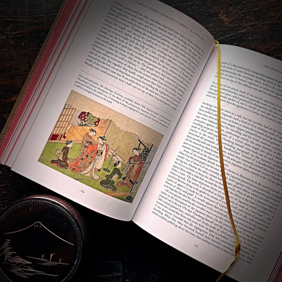 Their journals, letters, and Linnaeus’ own writings reveal a rich record of global textile traditions: from wool production and indigo dyeing to the Silk Road’s luxury trade and the bustling ports of Cadiz, Batavia, and Canton, where fabrics, dyes, and linens changed hands. One chapter covers Carl Peter Thunberg's visit to Japan and includes unique observations on Japanese textile traditions. The 520-page book is available via BOOKS & ART.