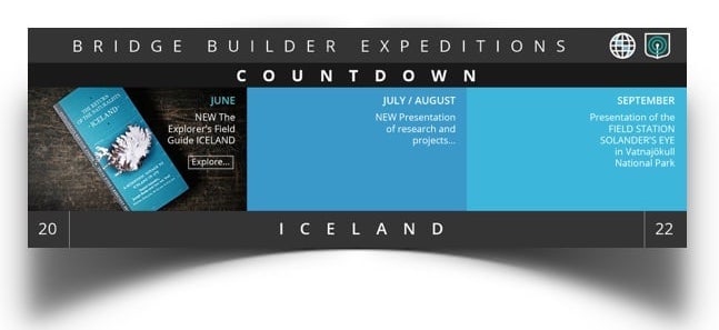 • JUNE | Launch of The Explorer’s Field Guide. THE RETURN OF THE NATURALISTS - ICELAND. A Scientific Voyage to Iceland in 1772. This foldable pamphlet with outstanding pictures, panoramas and maps is an interdisciplinary work focusing on “Bridge Building” within Natural & Cultural History. An excellent and inspiring overview and introduction on the subject. Explore...
